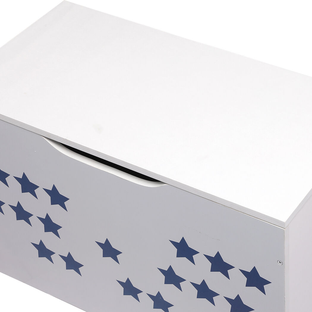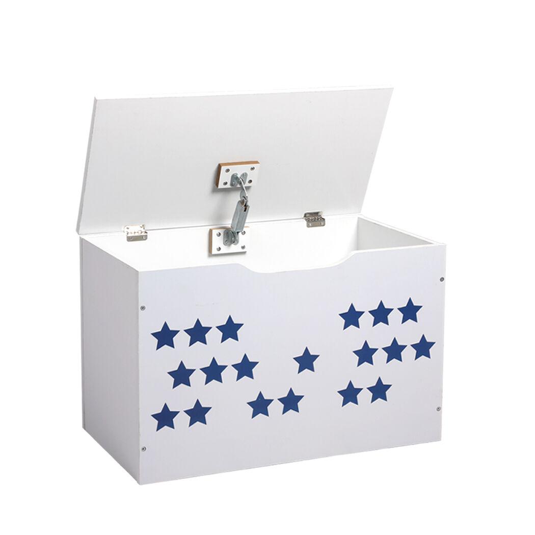 White blends in perfectly to every room. Or paint it another colour if you like. Let your kids use the included blue star stickers to decorate their toy organiser to their liking.