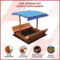 Our sandpit will delight your children for hours on end. No worries about exposing them to the harsh rays of the sun. Our fabulous sandpit comes equipped with a crisp white and blue UV-protected canopy. Your kids will stay happy and cool while at play in this amazing outdoor toy. When not in use, the seats are foldable and cover the sandpit to keep out debris and animals.