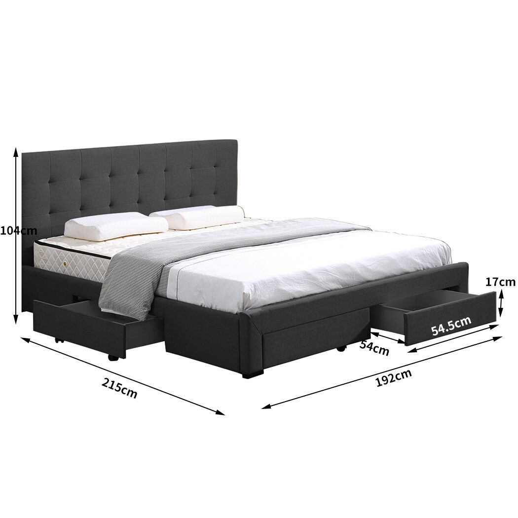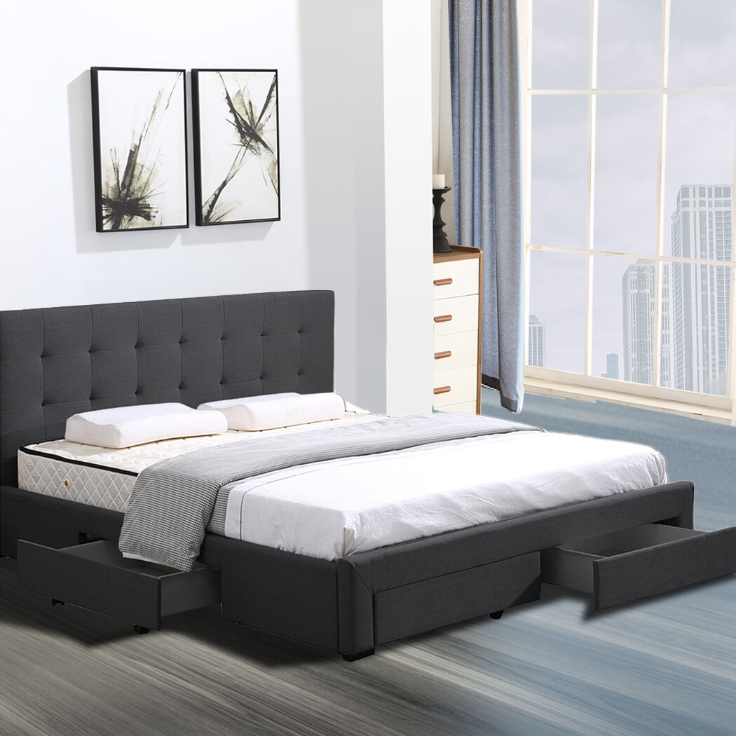 $516.99If you're looking to for an attractive bed keep your space clutter-free, our fabric bed with storage drawers is the perfect choice for you. The frame is constructed with a sturdy wood frame that's wrapped with cotton and linen fabric will look stunning in any bedroom in your home. Not only does it provide a stylish place to sleep, but the storage drawers will help you keep your space clutter-free.