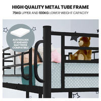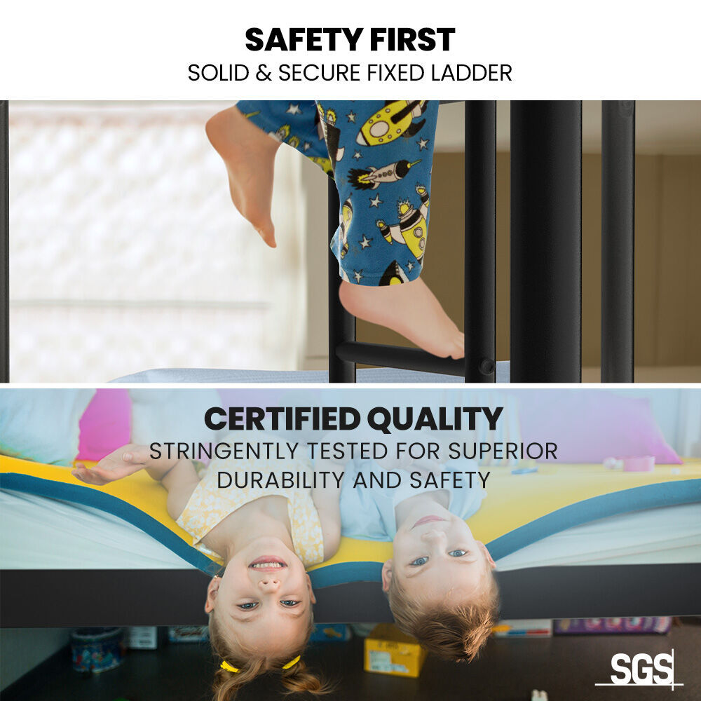 Thanks to its smart convertible design it can be split into two individual single bed framesand with a 75kg upper and 100kg lower capacities it can provide many years of use, as your family grows. It is compatible with standard single sized mattresses and designed and tested to meet stringent Australian standards.