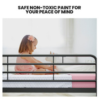 The strong tubular metal frame has a matte dark grey non-rust finish with matching fastenersso this bunk bed not only looks great, but is also built to last! Soft rubber feet ensure that the bed can be placed on any floor type without the risk of scratching. With safety in mind, this bunk bed has no sharp edges and smooth welded joints. It also features a solid and secure fixed ladder that is easy to climb without the wobbles of other less sturdy bunk beds.