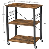 Kitchen Baker's Rack, 3-Tier Serving Cart with Metal Frame and 6 Hooks, Rustic Brown
