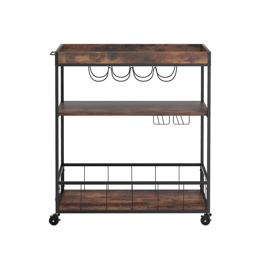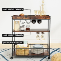 Introducing our Artiss versatile mobile kitchen island. Featuring three-tier open shelving, a spacious prep surface, wine and glass storage, and sturdy metal construction, it's perfect for kitchens, dining rooms, and more. Easy assembly and lockable wheels ensure convenience and stability.