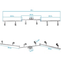 • Swivelling Design Spotlight: Our 6-way Ceiling spot light can be rotated 270 degrees. With 6 swiveling short lamp arms, the ceiling light can be rotated 270 degrees; With 6 adjustable light bases,the track lighting kits can be swung 90 degrees upside down.