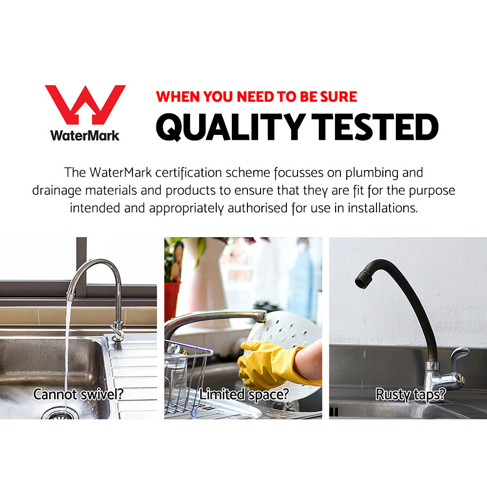 Give your kitchen a sleek makeover with the Cefito Kitchen Mixer Tap. Crafted from a high-quality mix of 304 stainless steel, solid brass, polished chrome and ABS plastic, our Kitchen Mixer Tap is meticulously designed to increase efficiency and enhance flexibility with any washing done in your sink. It also features a 35mm drip-free ceramic cartridge that ensures longlasting performance for absolute durability and reliability. Suitable for both hot and cold water use, the Mixer Tap is also Watermark-certified and WELS-approved to comply with stringent health and safety standards in plumbing and water supply products as well as current Australian standards. Plus, the gooseneck allows you to swivel the water in any direction. Easy to install, the Cefito Kitchen Mixer Tap will fit any sink with a tap hole diameter between 35mm and 38mm. The Cefito Kitchen Mixer Tap is your best choice for a modern kitchen that stands out in form and function. Get yours today.