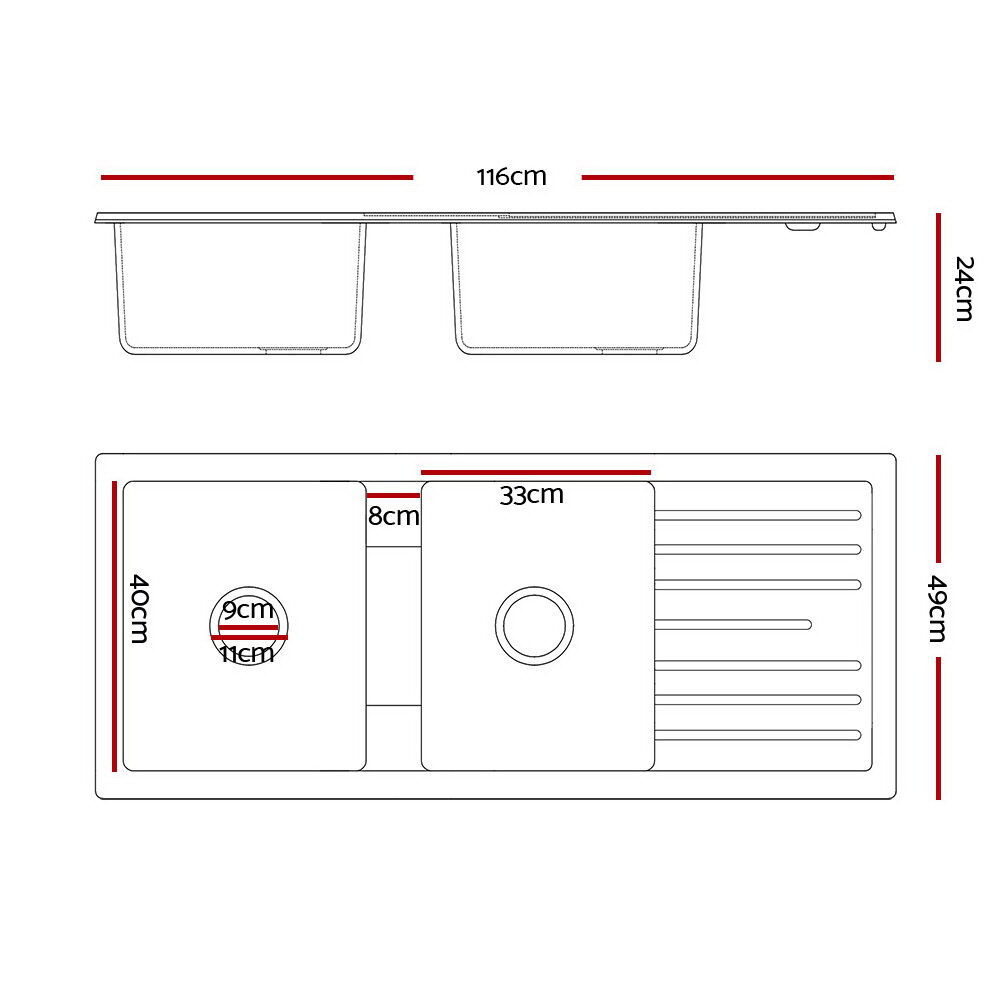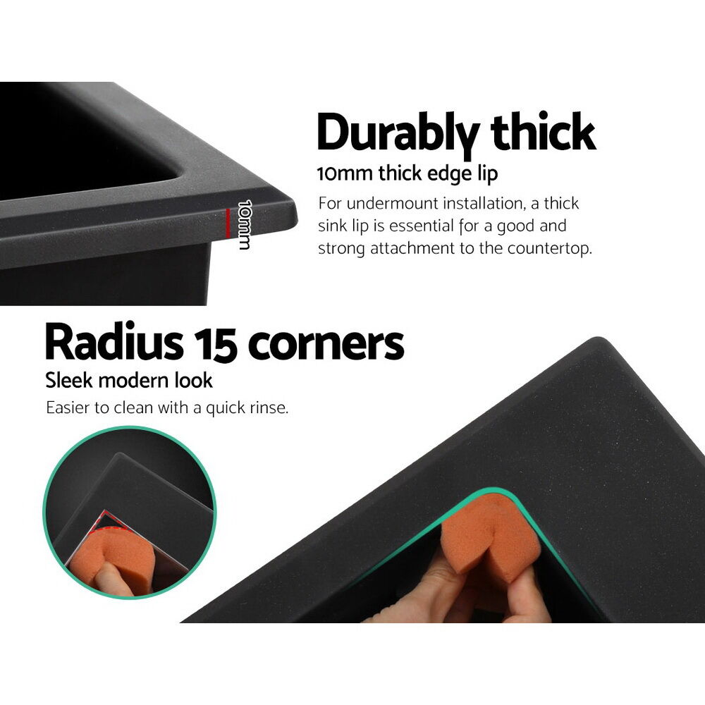 $395.73Your meals should always be prepared with safe, hygienic and food-grade equipment. That is why our Cefito Stone Sink is perfectly suited for your fine kitchen. Made from premium-quality black granite stone composite (80% granite), our 10mm thick stone sink with a silky textured surface and double bowl not only looks fabulous but is also extremely durable and long-lasting. Every bit of the sink is non-toxic, lead-free and highly resistant to heat, scratches, stains and dirt. Oil will not adhere to it and neither does it fade with consistent or heavy-duty use. The quality finish along with the R15 rounded corners means the sink is completely easy to clean and maintain. Our stone sink also includes a 304 stainless steel waste strainer. It even comes with a five-year warranty for your peace of mind. With its contemporary finish, our stone sink is a definite stand-out in your esteemed kitchen.
