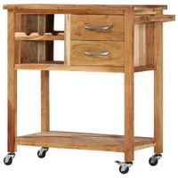 Create a distinctive and vintage touch and add more storage space to your kitchen with our solid wooden kitchen trolley! Whether you want to use it as an extra storage space for your food, as a side table or as a trolley - no problem. The acacia wood stands out as a solid hardwood, together with the natural finish, making the cutting trolley exceedingly stable and durable. 4 casters, 1 of which is lockable, are equipped for smooth mobility. Therefore, the trolley can be easily moved, locked and safely parked at any time. The drawers and shelves offers storage space for placing your bottle rack, cookbooks and other kitchen utensils. The towel rack on the side keeps you towels at hand.
