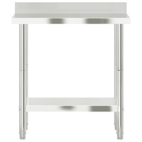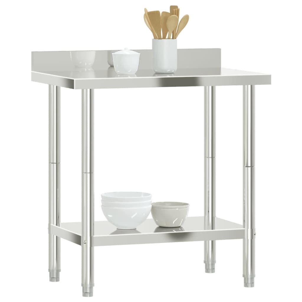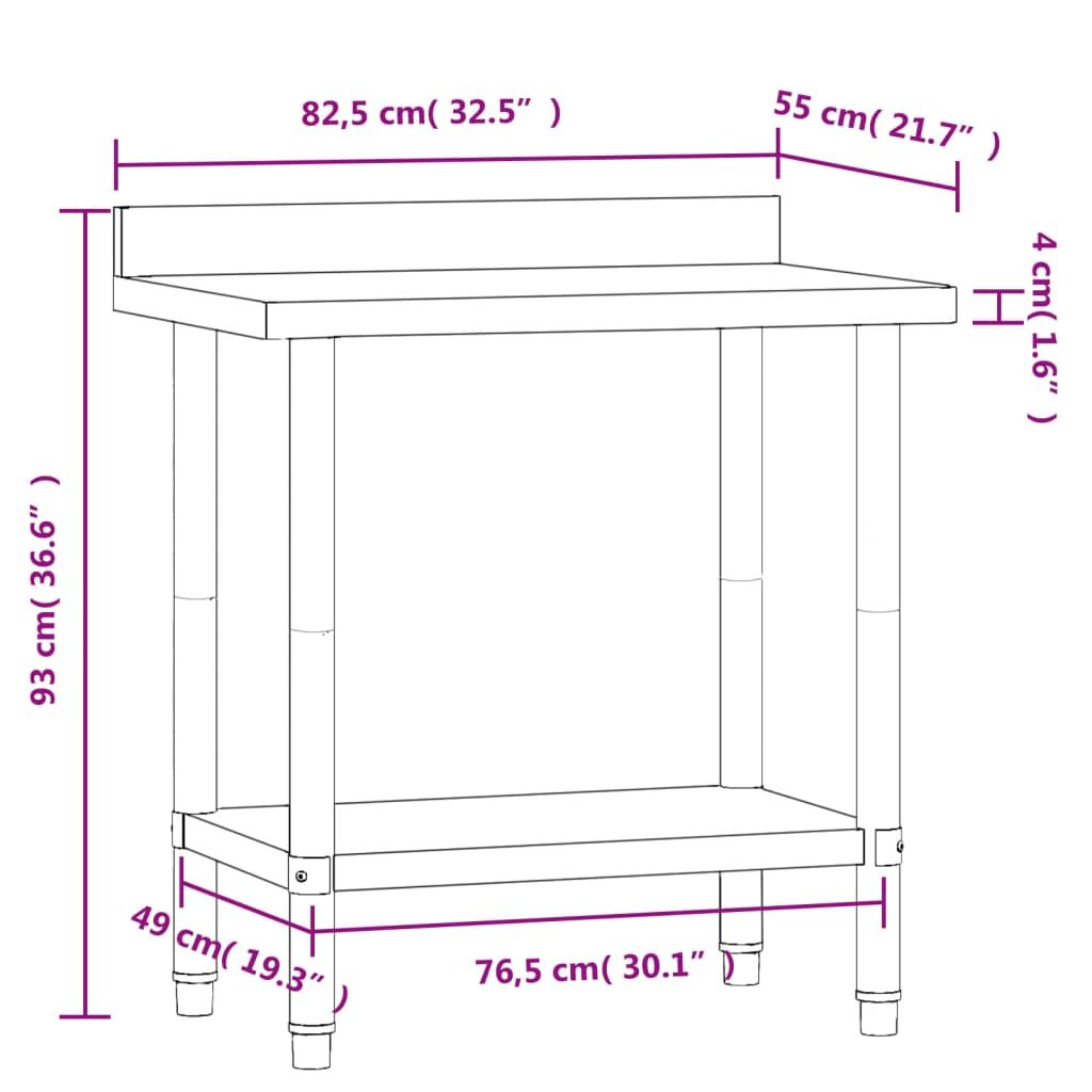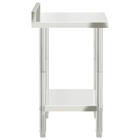 This kitchen work table is perfect for food prep and storage and is ideal for a kitchen bar, restaurant, school, as well as other commercial places. Durable material: The work table is made of durable stainless steel, providing resistance to corrosion and rust and ensuring years of reliable use. It is also easy to scrub and clean.Ample workplace: The stainless steel prep top is designed with a bottom shelf for customised storage space, providing ample storage space for your microwave oven, kitchen utensils, or any other tools you may need.Practical backsplash: The backslash effectively protects your walls from scratches and dirty water, ensuring a clean and tidy kitchen.Adjustable feet: The adjustable feet with a non-slip design ensure the kitchen prep table remains stable and will stay put, protecting the floor from damage. Warning:To prevent it from tipping over, this product must be used with the provided wall attachment device.