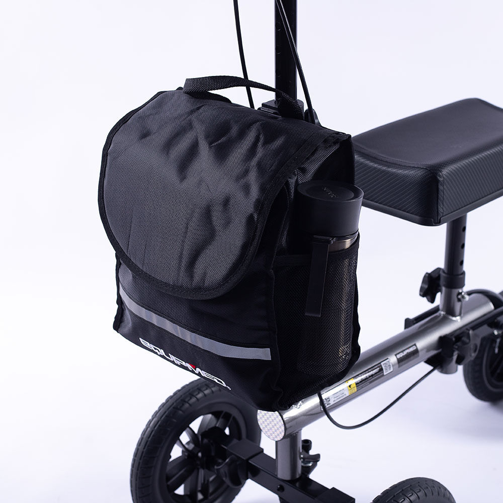 The convenient bag hooks onto the front of the scooter for carrying your belongings.