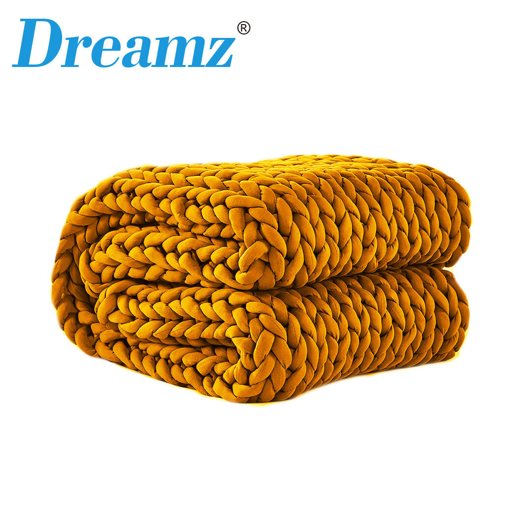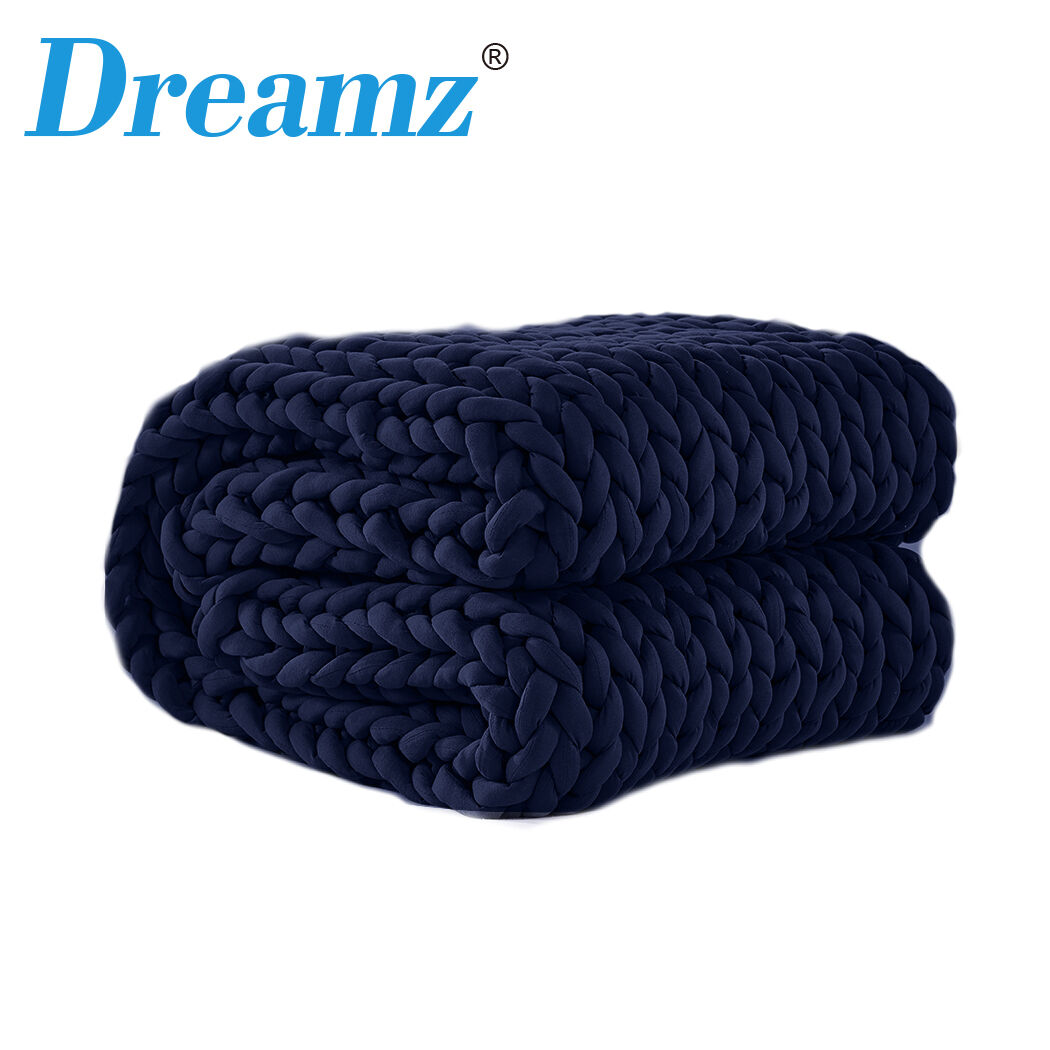 Use your new weighted blanket to help calm your nerves and anxiety. A calming blanket might be exactly what you need to get a perfect night’s sleep. It is like a warm hug all night long.We expect you will use this heavy blanket for sleeping. You can also be all nice and snug in the lounge room watching your favourite drama while drinking a hot chocolate. Why not get second so you can invite a friend over to chill with you You get warmth in winter and breathability in summer with this large chunky knit weighted blanket design. You will be using this for many seasons to come. It is just that well-built.Clean your weighted sleep blanket in the washing machine along with anything else that will fit. You can ever put it in the dryer so you will never miss a night’s sleep with it.Pick the perfect colour and size for your needs. Suitable for queen size bed and downwards. Grey pink blue grey navy or yellow. You decide.