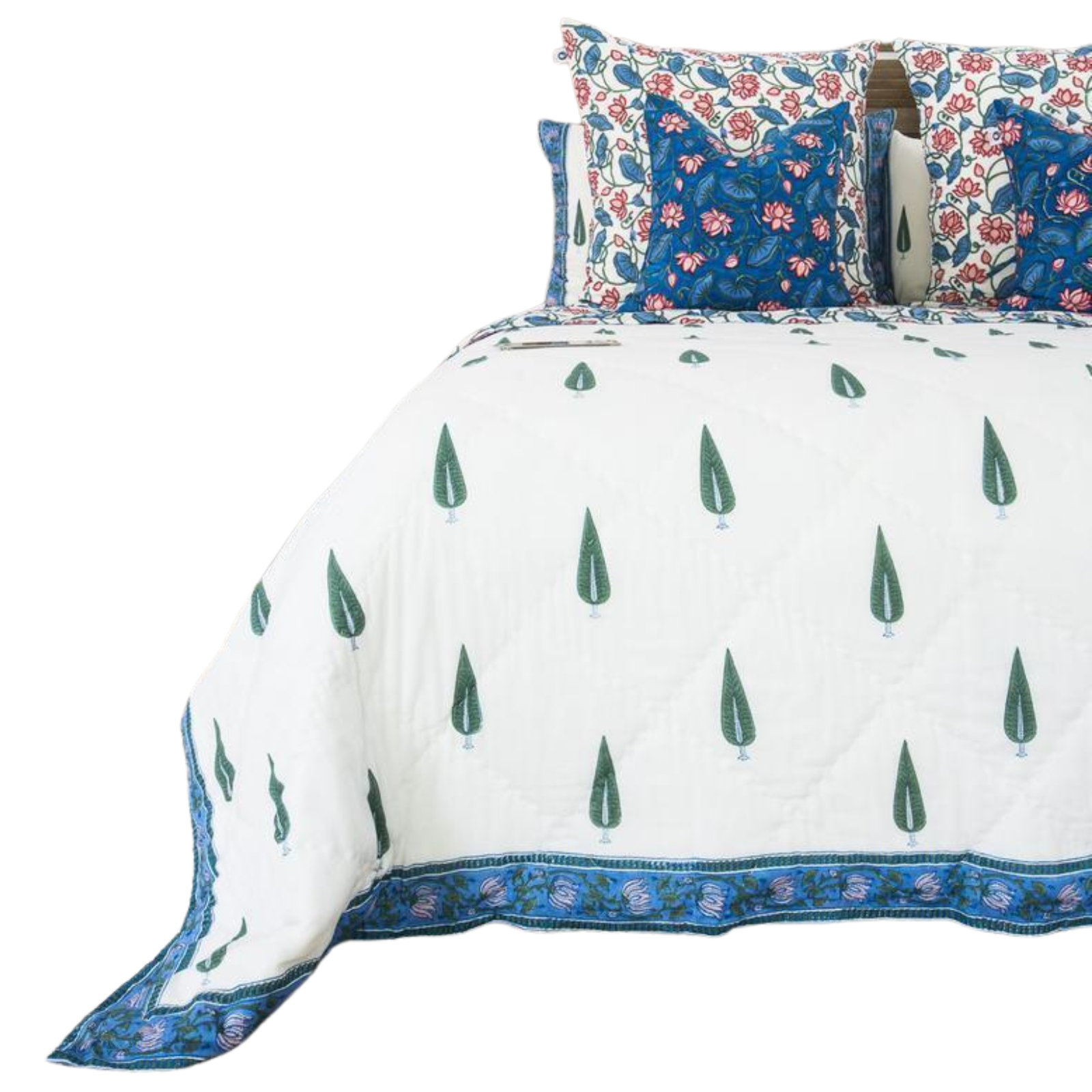All our quilts are designed in Melbourne and individually hand block printed by skilled artisans. Our quilts are hand made using superior quality pure cotton fabric.