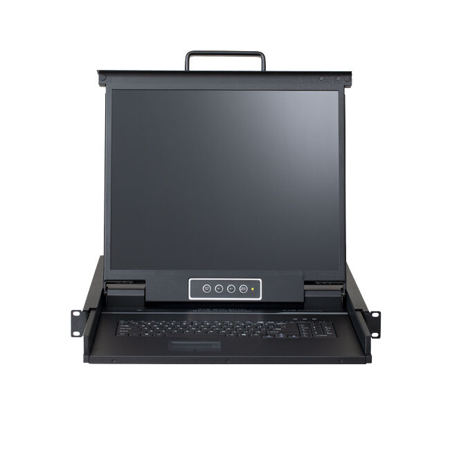 rack-mountable KVM switch is well equipped with an integrated trackball and keyboard, making it easy to control and navigate.