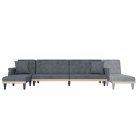 This L-shaped sofa bed is perfect for accommodating overnight guests while providing a comfortable seating space during the day. Multifunctional sofa bed: The sleeper sofa is a wise choice for limited space. It has 3 convertible positions for sitting, lounging, and sleeping, so it can be a comfy reclining couch bed for daily use or a temporary bed for guests.Soft velvet: Velvet is a soft, luxurious fabric that is recognised by its dense pile of evenly cut fibres that have a smooth nap. Velvet fabric features a distinctively soft feel, making it comfortable to touch.Sturdy and stable frame: The plywood and wooden frame of the sofa bed couch ensures sturdiness and stability.Comfortable seat experience: Featuring a velvet upholstery enveloping high-density foam, this folding sofa bed provides a comfy cosy spot for sitting and sleeping. Its armrests and backrest also provide additional relaxation. Note:The product is assembled by a sofa bed and a chaise longue. You can put the chaise longue on the right or on the left as you prefer.