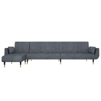 This L-shaped sofa bed is perfect for accommodating overnight guests while providing a comfortable seating space during the day. Multifunctional sofa bed: The sleeper sofa is a wise choice for limited space. It has 3 convertible positions for sitting, lounging, and sleeping, so it can be a comfy reclining couch bed for daily use or a temporary bed for guests.Soft velvet: Velvet is a soft, luxurious fabric that is recognised by its dense pile of evenly cut fibres that have a smooth nap. Velvet fabric features a distinctively soft feel, making it comfortable to touch.Sturdy and stable frame: The plywood and wooden frame of the sofa bed couch ensures sturdiness and stability.Comfortable seat experience: Featuring a velvet upholstery enveloping high-density foam, this folding sofa bed provides a comfy cosy spot for sitting and sleeping. Its armrests and backrest also provide additional relaxation. Note:The product is assembled by a sofa bed and a chaise longue. You can put the chaise longue on the right or on the left as you prefer.