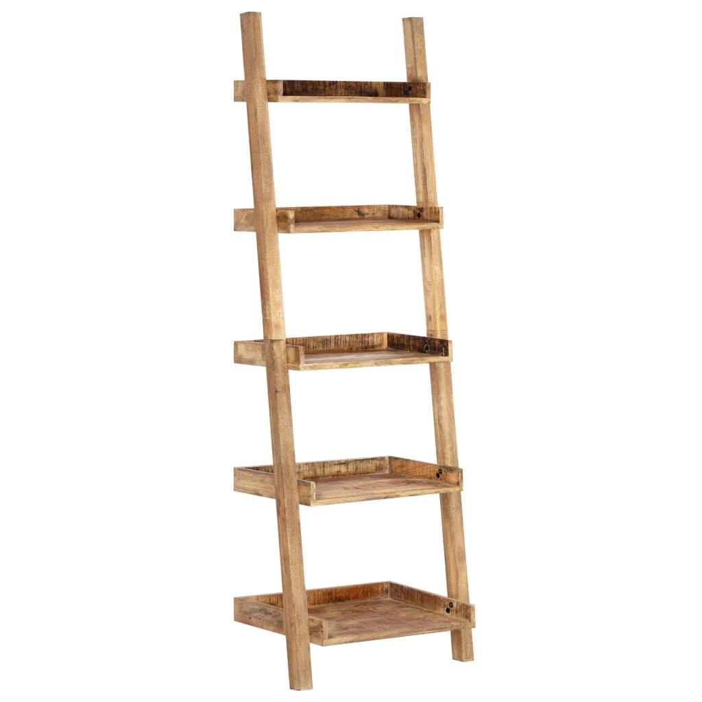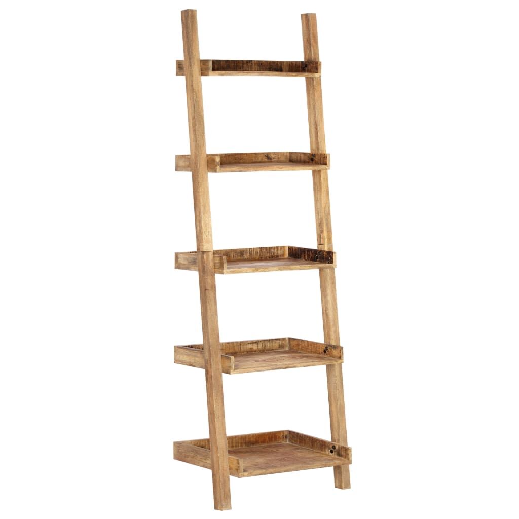This 5-tier ladder shelf will be a perfect solution for keeping and displaying plants, books, as well as other decorative items. The book shelf is made of solid mango wood, a hardwood with dense grains. Rough mango wood not only has the strength to bear the weight, but also stands the wear and tear of time. As a consequence, this shelf cabinet is considerably stable, durable and eye-catching. The solid wooden rack features 5 shelves, providing commodious space for your books, plants, as well as various decorative items. Important note: The wood grain may vary from piece to piece, making each piece unique. The delivery is random, ensuring the exclusivity and individuality of your product.