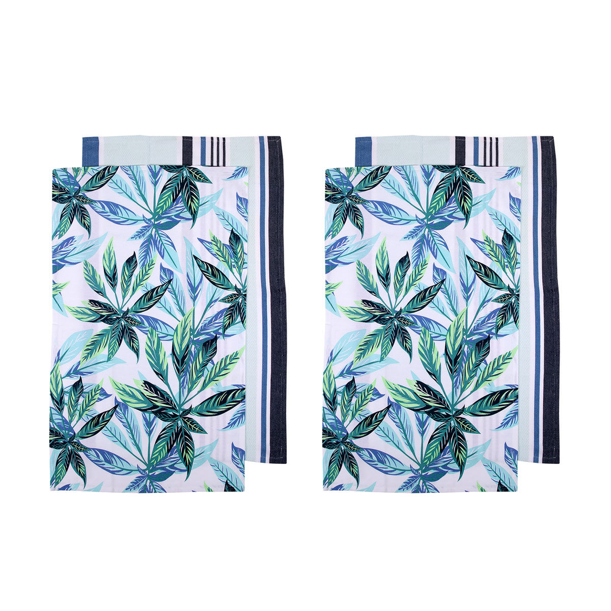 Get into the summertime vibe with our vibrant Set of 4 Zest Leaves Green Cotton Kitchen Tea Towels 50 x 70 cm by Ladelle. All textiles are 100% cotton and are machine washable. A functional and stylish way to keep your kitchen clean and organised. It features leaves design printed in vibrant colour tones of white, green, aqua, blue, and navy that will add a touch of personality and charm to your kitchen decor. Made from quality and absorbent 100% cotton fabric with easy care properties. 100% AZO free dyes. Made to European Quality Standards