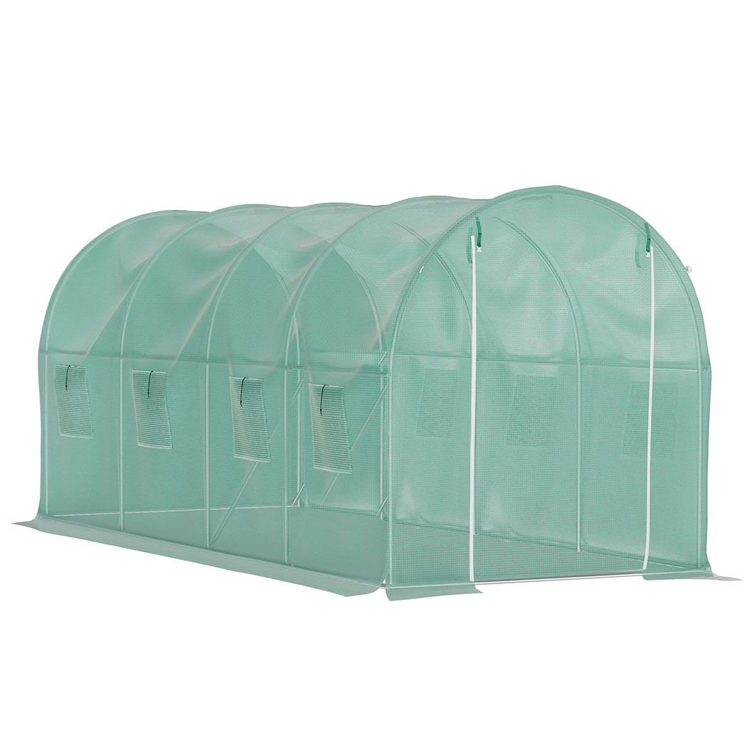 The galvanized steel frame is lightweight yet sturdy, effective in resisting corrosion and rust. The greenhouse is designed with well-balanced frames to maintain stability against rain and wind.