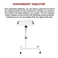 With adjustable tabletops, you can easily customize the height and seating position to your preference. Whether you prefer to sit or stand, this desk adapts to your needs. The four lockable castor wheels provide smooth and effortless maneuverability, enabling you to use your laptop from any space with ease.