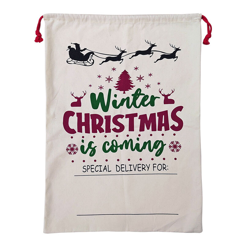 • This canvas gift bag will make your children's eyes light up on the holidays.