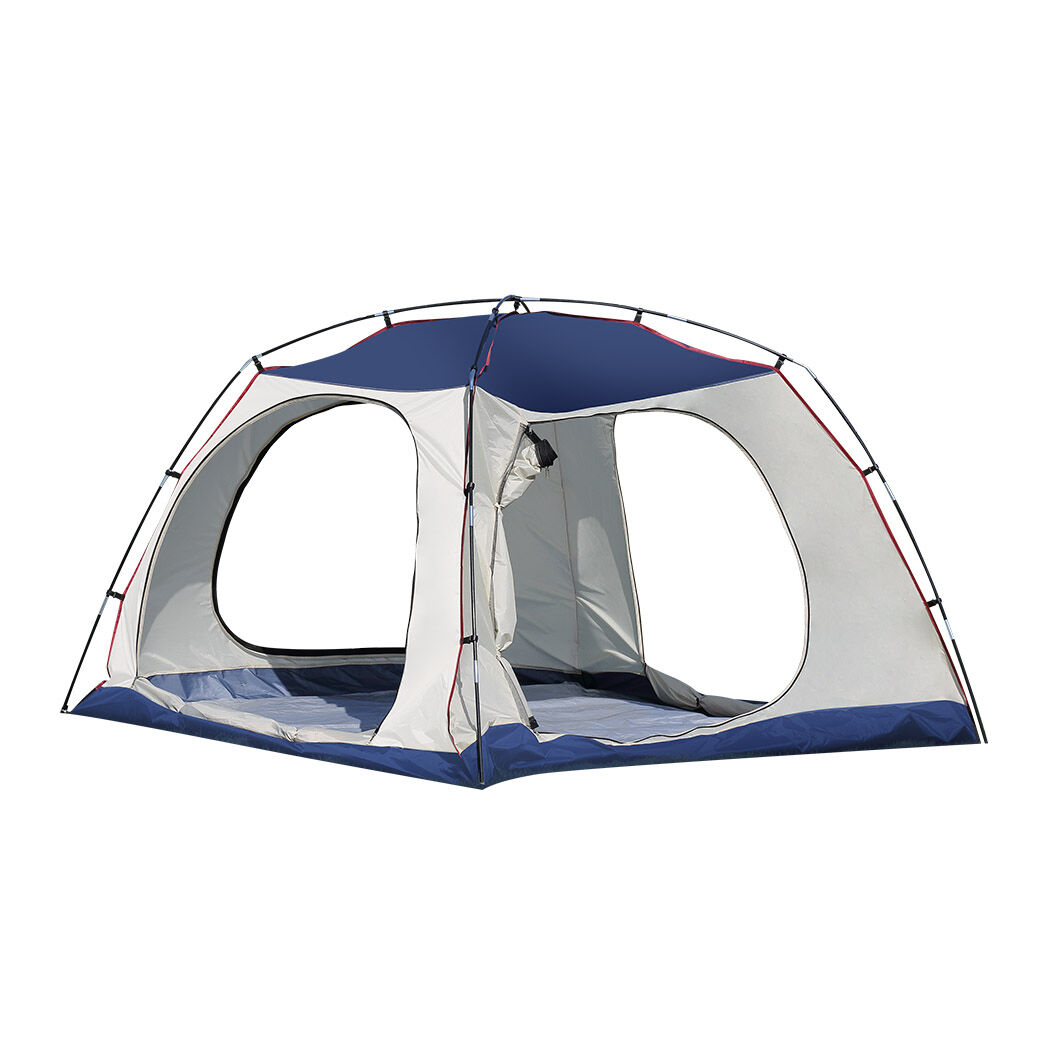 To support you in your journey of exploration our product is built with premium quality 150D oxford cloth. The poles are structured around with extra sturdy fiberglass for added durability and stability. Polyester construction provides excellent resistance towards UV rays and its waterproof capabilities provide ultimate protection against rainfall. No matter what the weather condition it can withstand it all, with pleasure. Provided with sturdy pegs and ropes to resist breezy winds. It comes equipped with a creative side awning to prevent water, sun, or wind from disrupting your peace. Featuring meshed windows for smooth passage of winds, it also prevents small insects from breaching in your tent space. Very easy to assemble, our product comes with a bonus carry bag, take it around anytime, anywhere. Born ready!