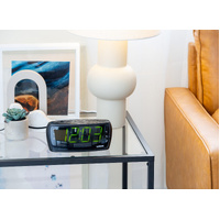 The huge 4.6 centimetre LED number display is efficiently visible while awakening and is also easy on the eyes with ‘hi/lo’ dimming options. Enjoy the eye-catching vibrant green LED display colour, set for you to start your day the right way. Its battery back-up power makes sure you’re always on time, even if a power shortage threatens your early morning start.