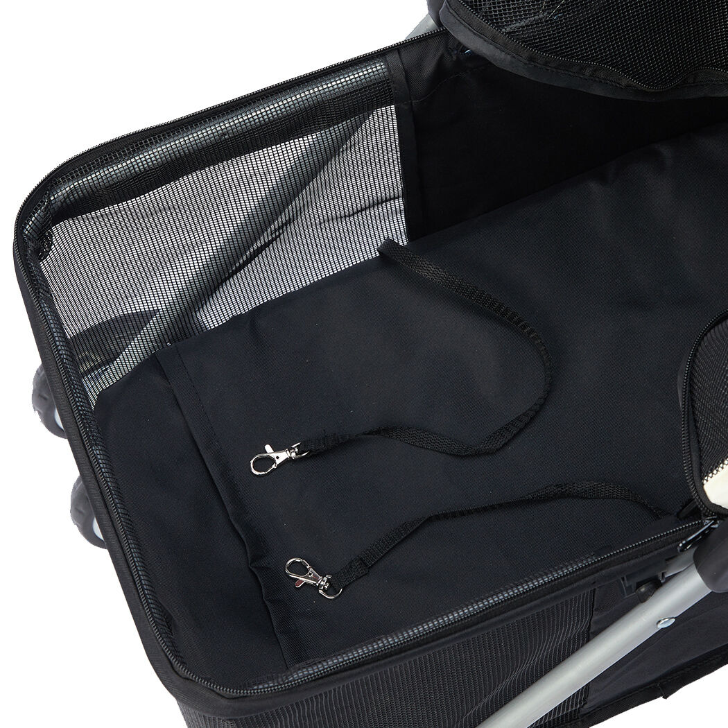Take your little one for a fun ride with our Pet Stroller. We offer the best dog and cat pram for your pet at a cheap price in Australia. It provides your pet with a safe and secure space to lounge, enjoy nature, or simply be themselves. It comes with a meshed front to give your furry friend a comprehensive view of the surroundings all while reclining in style. If they need fresh air adjust its canopy as you prefer. Great way to socialize your pet with less exposure to risks such as harmful terrain, irregular weather, flying insects, or any other non-friendly pets they might encounter. Going through uneven surface? Not a worry, with its modern spring shock absorption it will ensure a smoother experience. Designed to cushion your pet with the right amount of support, pampers them with its soft textures to sway them into a realm of peace and tranquility. It enables flawless airflow, great visibility, and protection – all of the necessary features packed into one. Sleek appearance, subtle finish.