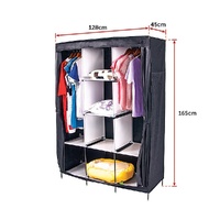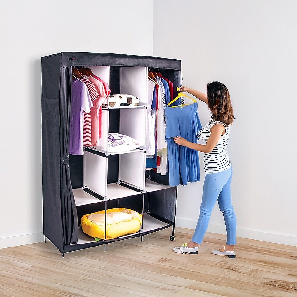 $52.19If you've vowed that this is the year you're going to organise your belongings, this large portable wardrobe by Randy Travis Machinery will be your best friend. With loads of shelves and two roomy spaces for hanging items, this space-saving wardrobe makes good use of every square centimetre of space. Store shoes underneath for even more storage. Not only is it practical, but its classically tailored design will look great in any room, while its neutral black colour will blend in with practically any room's colour palette. Use it as an elegant addition to your walk-in wardrobe to add even more storage space.