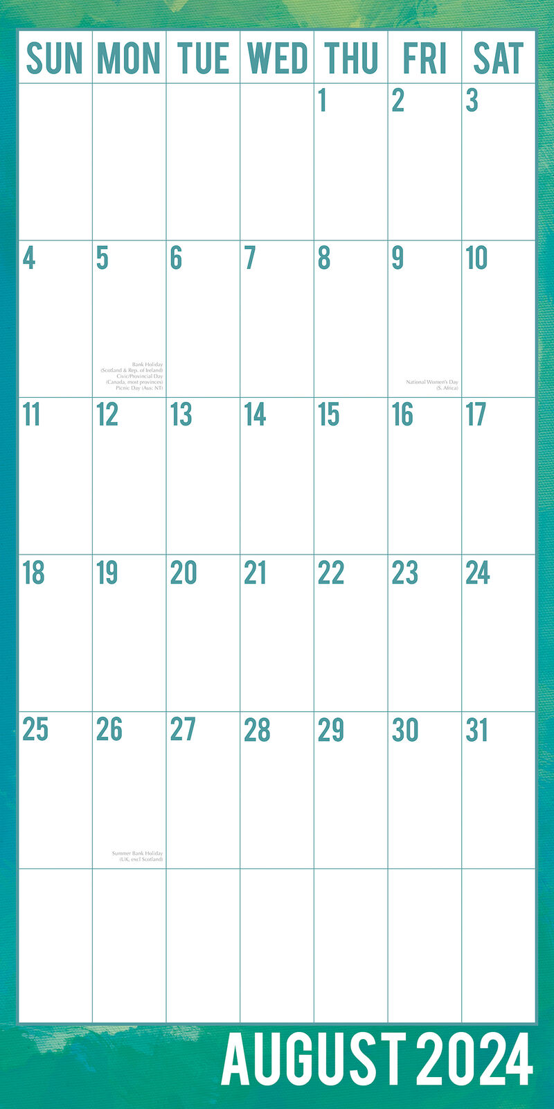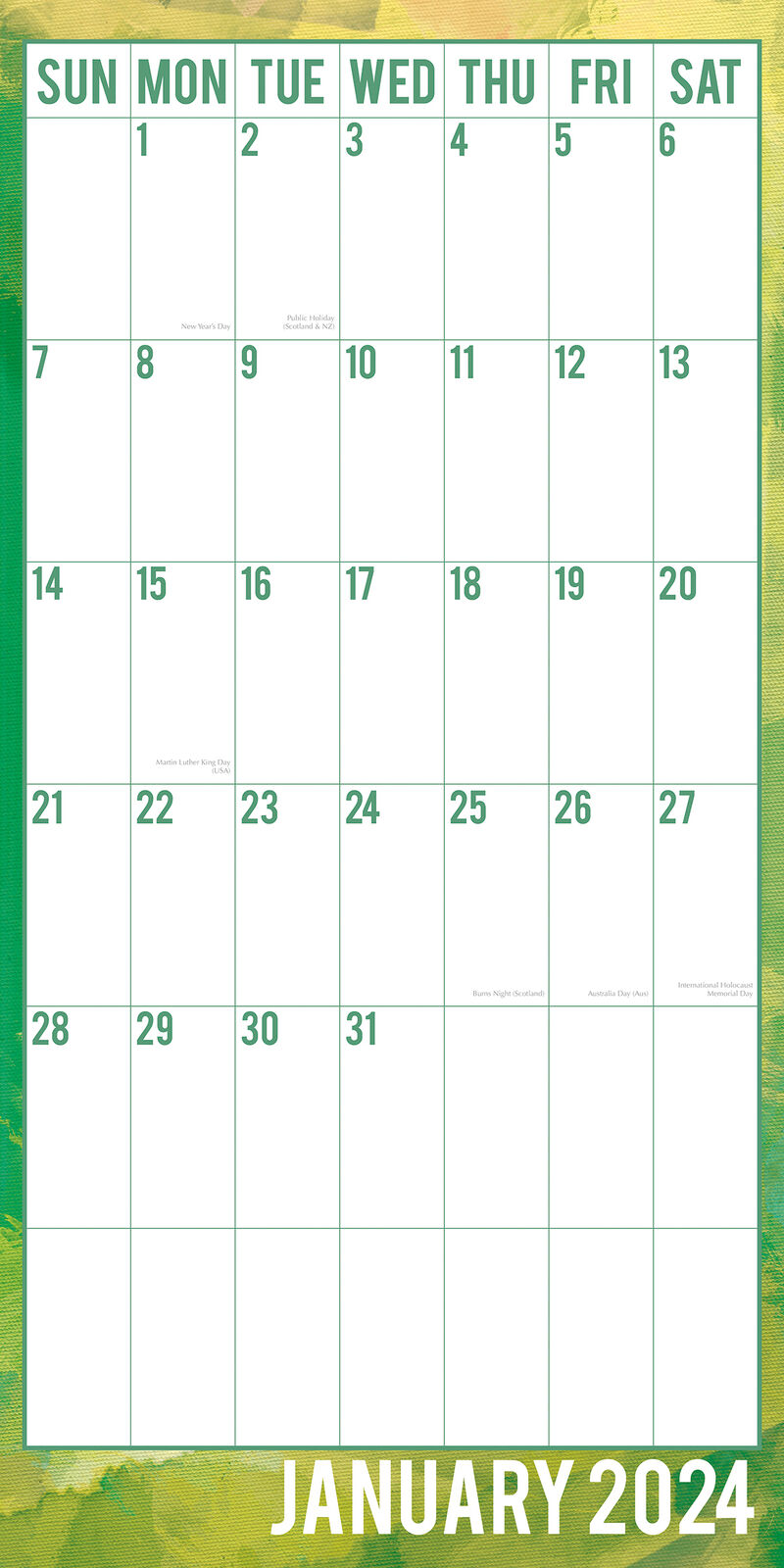 Brand New Calendar with Beautifully design, Sealed in Original Packaging, each calendar includes a large grid running from Sunday to Saturday. Publisher: The Gifted Stationery Co. Dimensions: 30cm (w) x 30cm (h) closed; 30cm (w) x 60cm (h) opened Time Span: 16 months (January to December 2024 monthly, September to December 2023 on-a-page) 2024 Square Wall Calendar featuring beautiful colour photographed images for every month of the year. Like most Wall calendars, this one comes with: