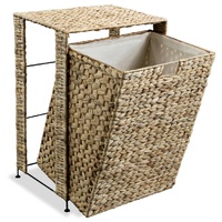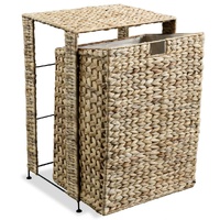 The laundry basket will make a great addition to your bathroom. The basket consists of a metal frame and water hyacinth, which make it sturdy and durable. It provides ample space for your laundry. The attractively woven style adds to the basket's rustic charm. The fabric liner is removable and washable.