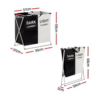 Get your laundry done effortlessly and without hassle thanks to the Artiss Sectional Laundry Basket. With 2 sections to separate dark, light and colour laundry, the basket not only has a large capacity but easily eliminates laundry mistakes no accidental staining. The laundry hamper features a robust and stable X-shaped frame made from aluminium alloy and hard-working fabric lining for long-lasting use. The hamper is conveniently designed to fold away at a moment's notice, so you can free up precious laundry space. You can also carry it around the house with the easy-to-use handle. Save time and effort while doing laundry with an Artiss Laundry Basket.