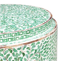Our hand-crafted Mother of Pearl furniture is expertly crafted, imparting each piece with a unique character of its own. Such pieces may bear small markings, smudges, glue spots, and other subtle details all of which contribute to its one-of-a-kind look. Patterns may differ from those shown in its original photos. Note that these details are not faults and are instead part of the charm of such hand-crafted items. To maintain these pieces, they should not be used outdoors, nor should cleaning chemicals be used. Instead, use a lint-free cloth, and also make sure not to place these pieces near heat or sunlight, as this may cause fading.