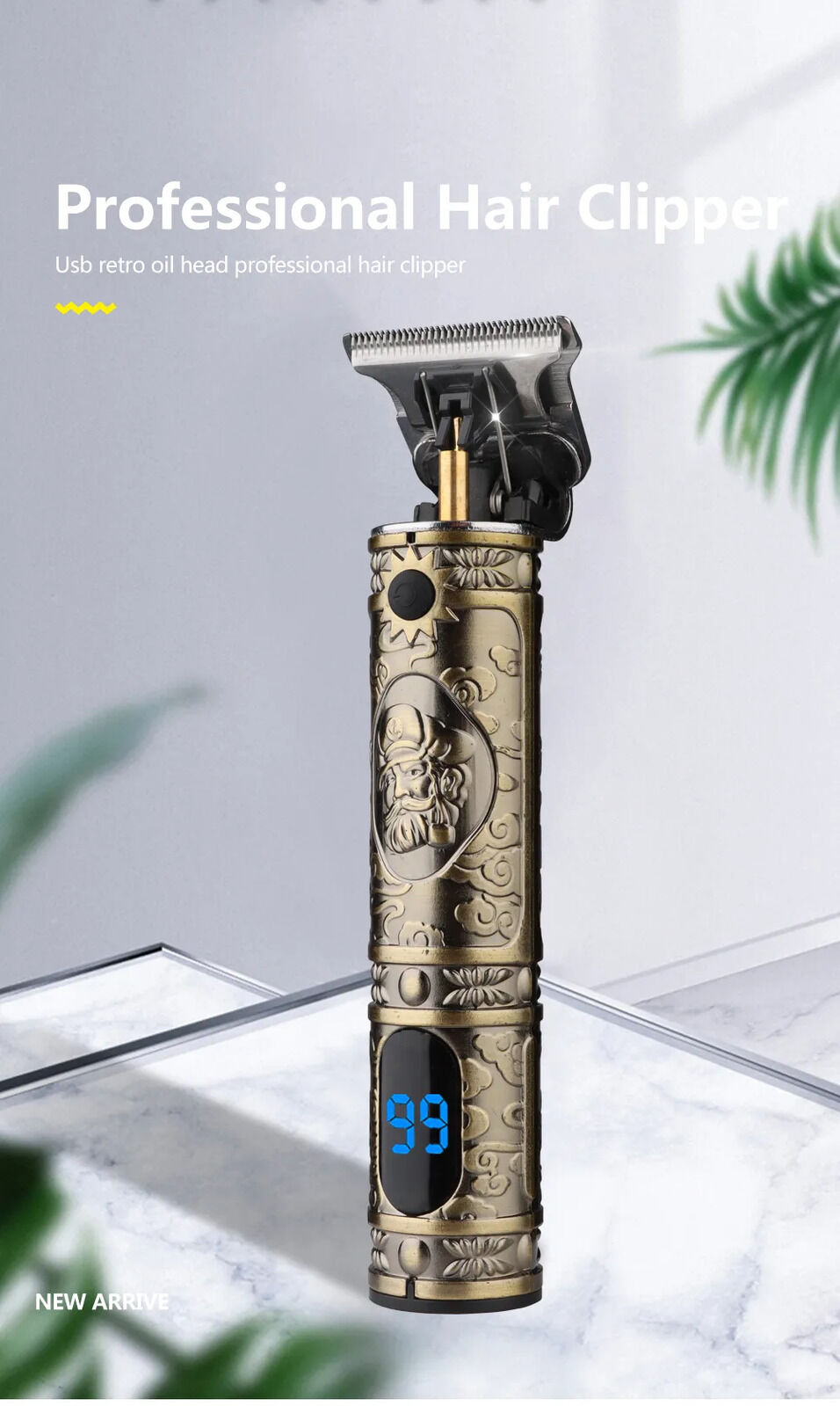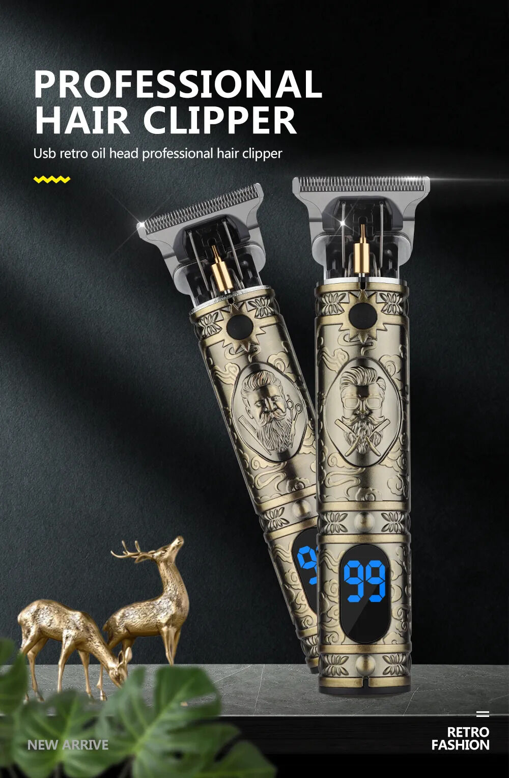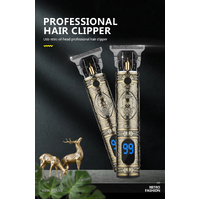 Unleash the artistry of grooming with our Vintage Gold Hair Clipper, where timeless design meets cutting-edge technology. Experience the precision of the titanium steel ceramic blade, enhanced further with the convenience of an LCD screen for an elevated grooming journey.