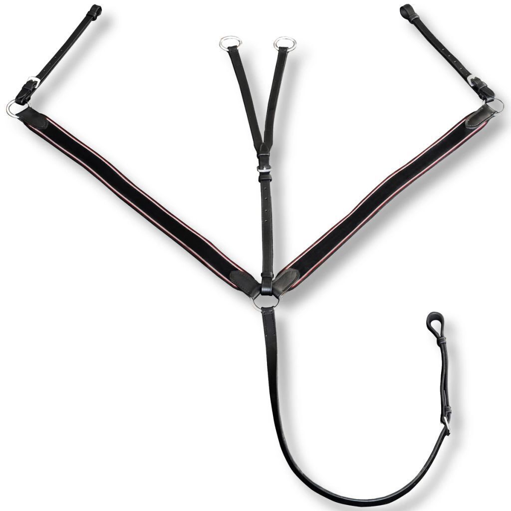 $41.35This leather elastic breastplate with running martingale attachment is a professional quality jumper breastplate for shows as well as everyday use. With adjustable neck straps, the length of the breastplate can be adjusted according to the size of your horse. The breastplate martingale is made of high-quality buffalo leather and has steel fittings, which give a classic look. The elastic minimises the restriction on your horse shoulders, but ensures that your saddle is stabilised properly.