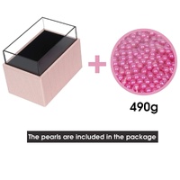 Leather Makeup Brush Cosmetic Organizer Storage Box with Pink Pearls and Acrylic Cover (Pink)