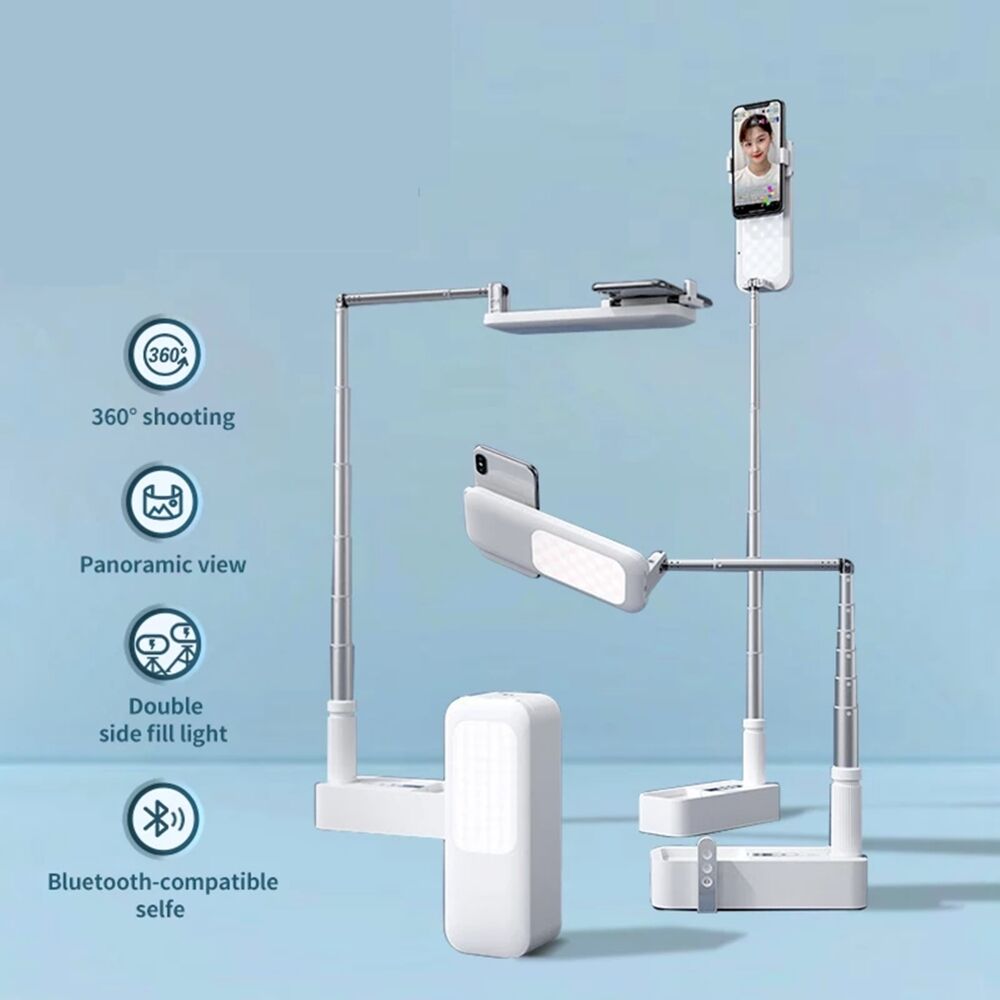 -Built-in 1000mAh Battery: This stand is a rechargeable, built-in 1000mAh high-capacity battery, that can work for 3-12 hours after charging. You can carry and keep it anywhere, perfect for outdoor live streams.