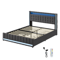 Integrated LED light strips on three sides of the headboard and an aluminum light channel at the foot of the bed enhance the ambiance. The lighting adds a stylish touch and provides practical illumination for a cozy atmosphere.
