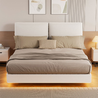 This floating bed is a unique creation, with legs that are cleverly hidden at the bottom of the bed, creating the illusion that it is floating above the floor. Its clean lines and tech fabric texture set the tone for minimalism in your bedroom.