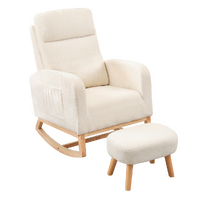 $298.29This rocking chair and ottoman set is thoughtfully designed for ultimate relaxation and versatility, making it ideal for both nurseries and living spaces. Upholstered in soft teddy bear plush fabric and filled with high-density foam, the chair provides outstanding comfort and lasting resilience. The ergonomic design, featuring a high backrest and wide armrests, offers excellent body support, making it perfect for adults seeking a cozy spot to unwind.