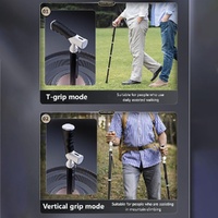 Lightweight Foldable Walking Cane: Adjustable Dual-Mode (T/Grip) Stick 0.26kg, Portable for Daily/Hiking Use