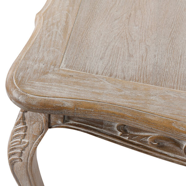 Lille dining table exudes vintage look with its design and colour. White washed finish on the dining table presents a timeless look that will stand out in any living room. The top of the table is enough spacious to meet your need.
