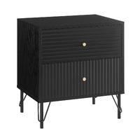 Materials: Particle board melamine body, MDF painted drawer front, Powder coating metal legs