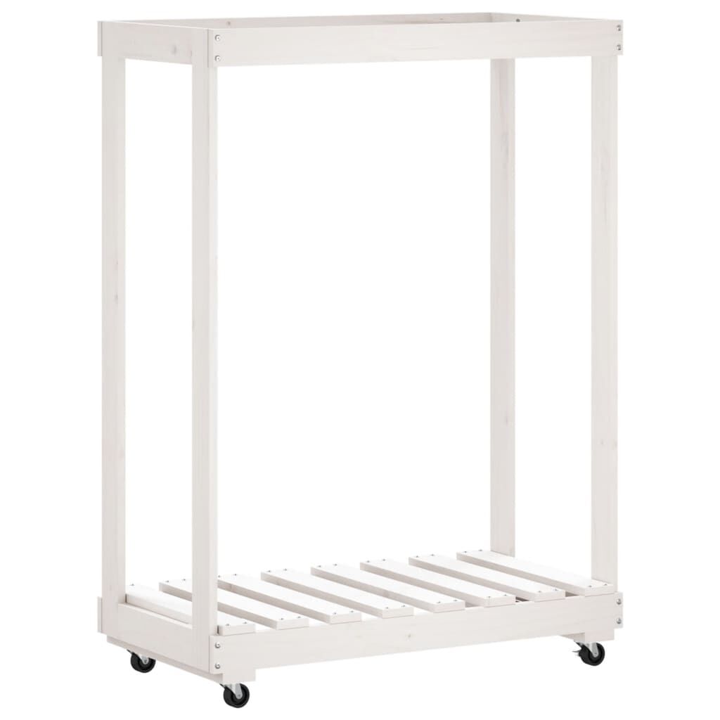 This wooden log holder is an ideal solution for neatly storing your firewood. Solid pine wood: Solid pine wood is a beautiful natural material. Pine wood has a straight grain, and the knots give the material its signature, rustic look.Ample storage space: The firewood rack features ample storage room, so you can stack your wood precisely and orderly.Further dry: The log store keeps logs off from the ground, allowing better airflow to prevent wood from rotting and meanwhile to further dry the firewood.Easy to move: This wood storage can be moved around effortlessly thanks to the smooth rolling wheels.