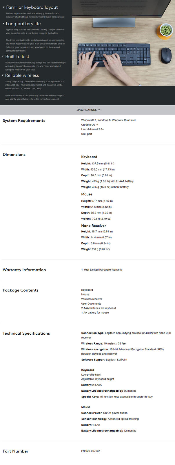 1x Logitech MK235 Wireless Keyboard Mouse (920-007937)