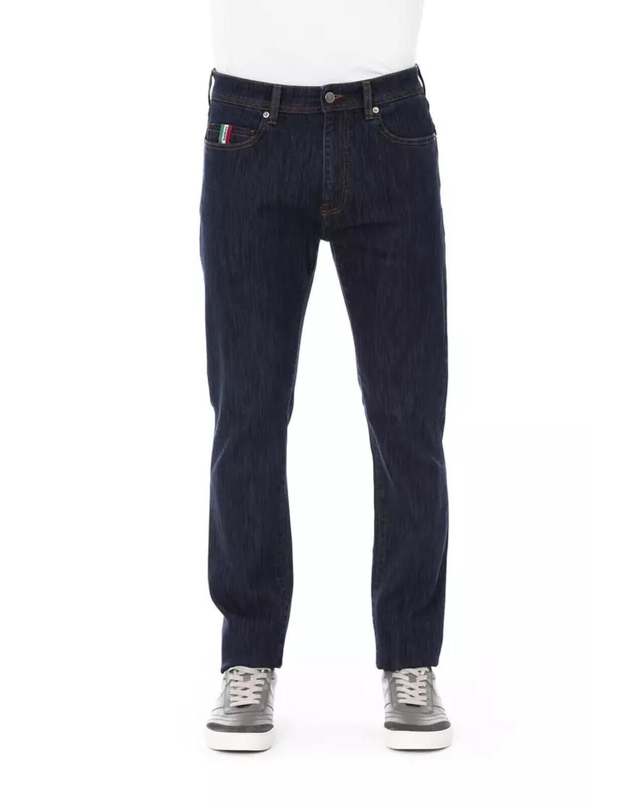 Logo Button Regular Fit Jeans with Tricolor Insert and Contrast Stitching Men