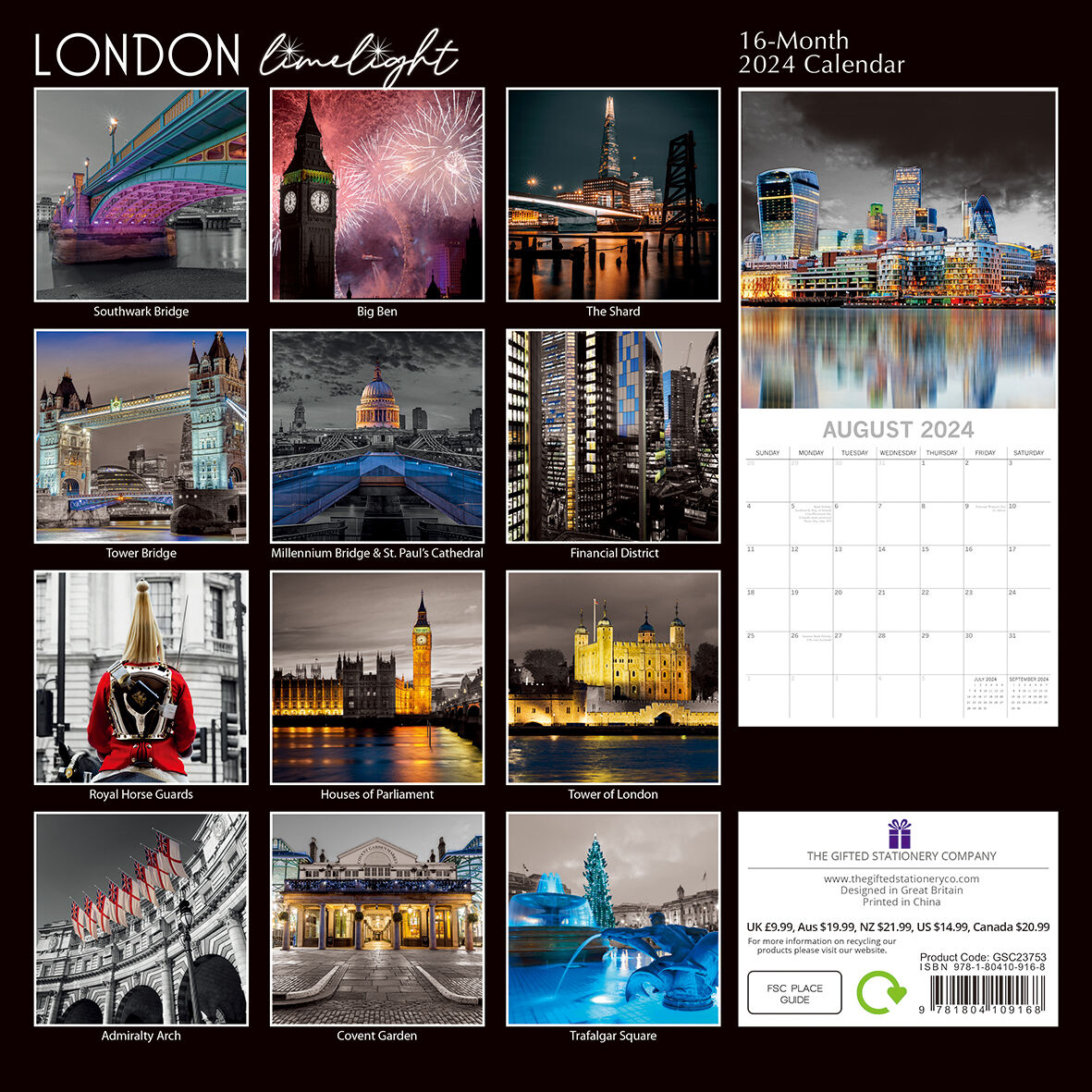 London Limelight - 2024 Square Wall Calendar 16 Months Planner New Year Gift