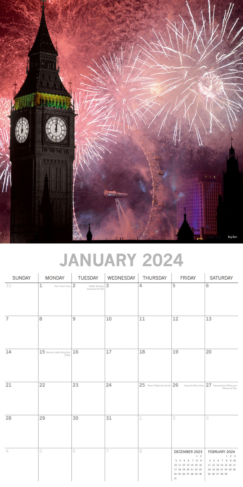 • 12 months of full-colour images (January to December 2024), a month per page
