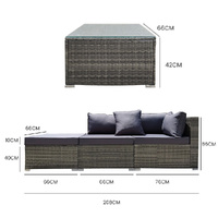 The set includes ultra-comfy 8cm thick water-resistant seat cushions, generous backrest cushioning and a premium throw cushion. . The high-quality UV-resistant handwoven Suntech wicker in Marl Grey weave has a premium natural textured look. With a modular design comprising a sofa, one corner sofa, an ottoman, plus a coffee table with tempered glass table top. You can set it up in whatever configuration works best for you, making this London Rattan outdoor lounge setting a great addition to any outdoor space.