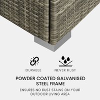 $753.87The London Rattan 4 Seater Outdoor Lounge Set is a stylish yet affordable setting designed to provide utmost comfort. The London Rattan outdoor furniture setting has a durable galvanised steel frame with additional powder coating, ensuring no rust stains on your outdoor living area.