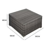 The coffee table includes a tempered glass table top. The high-quality UV-resistant handwoven Suntech wicker in Marl Grey weave has a premium natural textured look. Mix and match with other London Rattan modular pieces to create your own custom outdoor setting. You can set it up in whatever configuration works best for you, making this London Rattan outdoor ottoman a great addition to any outdoor space.