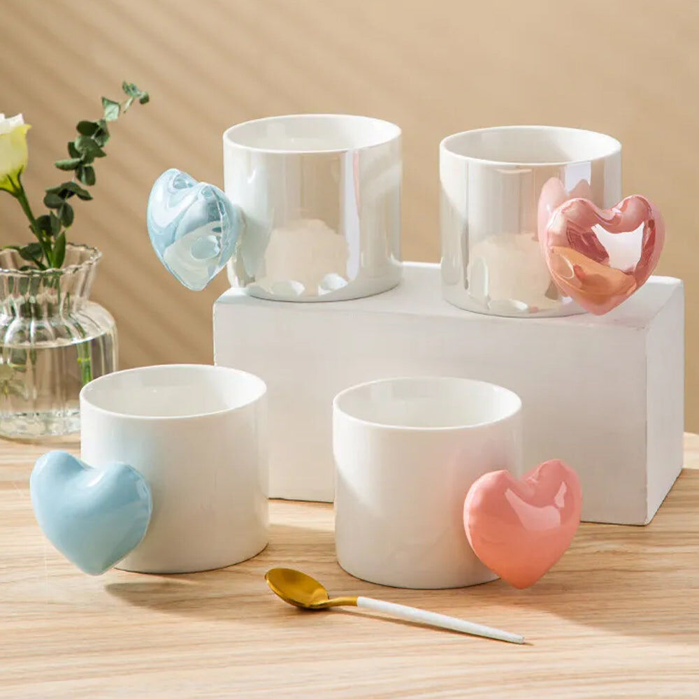 Lovely 4D Heart Love Ceramic Cup Mug Puffy Heart Handle with Gift Box (Pink)